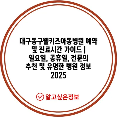 대구동구웰키즈아동병원 예약 및 진료시간 설명서 | 일요일, 공휴일, 전연락 추천 및 유명한 병원 정보 2025에 대해 알려알려드리겠습니다.