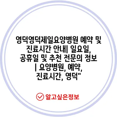 ✅ 영덕영덕제일요양병원의 진료시간과 예약 방법을 자세히 알아보세요.