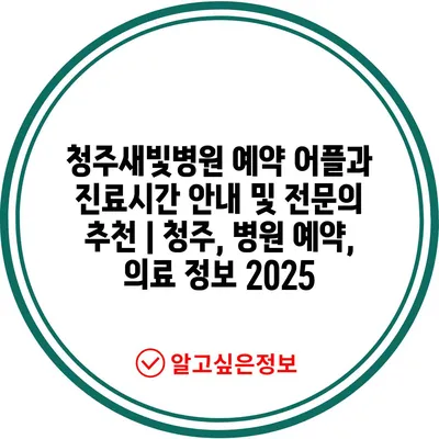 청주새빛병원 예약 어플과 진료시간 안내 및 전문의 추천 | 청주, 병원 예약, 의료 정보 2025