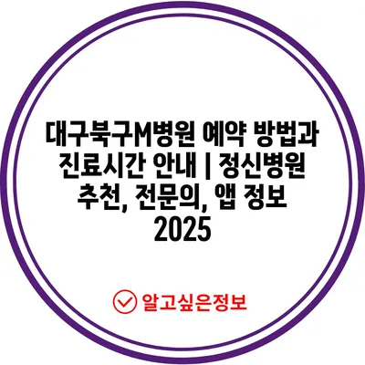 대구북구M병원 예약 방법과 진료시간 공지 | 정신병원 추천, 전연락, 앱 정보 2025