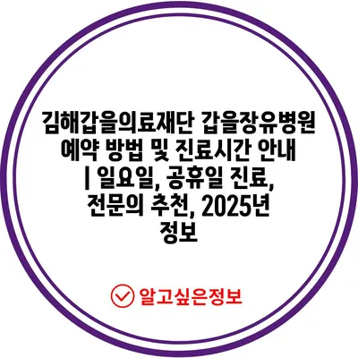 ✅ 갑을장유병원 예약 방법과 진료시간을 빠르게 알아보세요.