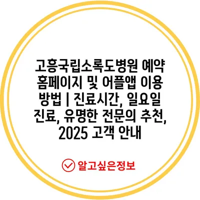 고흥국립소록도병원 예약 홈페이지 및 어플앱 이용 방법 | 진료시간, 일요일 진료, 유명한 전연락 추천, 2025 고객 공지 에 대해 자주 묻는 질문 TOP 5