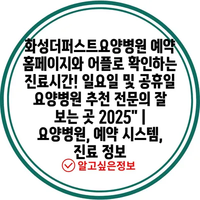화성더퍼스트요양병원 예약 홈페이지와 어플로 확인하는 진료시간! 일요일 및 공휴일 요양병원 추천 전연락 잘 보는 곳 2025″ | 요양병원, 예약 시스템, 진료 정보 에 대해 자주 묻는 질문 TOP 5
