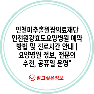 ✅ 인천원광효도요양병원 예약 방법과 진료시간을 알아보세요!