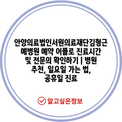 ✅ 안양의료법인서원의료재단김형근예병원 예약 방법을 알아보세요!