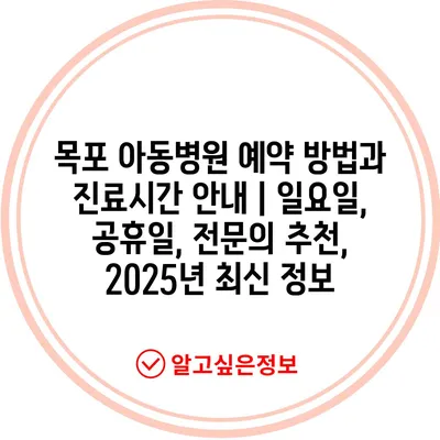 목포 아동병원 예약 방법과 진료시간 공지 | 일요일, 공휴일, 전연락 추천, 2025년 최신 정보 에 대해 자주 묻는 질문 TOP 5