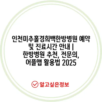 인천미추홀경희백한방병원 예약 및 진료시간 공지 | 한방병원 추천, 전연락, 어플앱 활용법 2025 에 대해 자주 묻는 질문 TOP 5