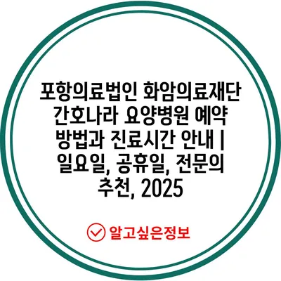 포항의료법인 화암의료재단 간호나라 요양병원 예약 방법과 진료시간 공지 | 일요일, 공휴일, 전연락 추천, 2025