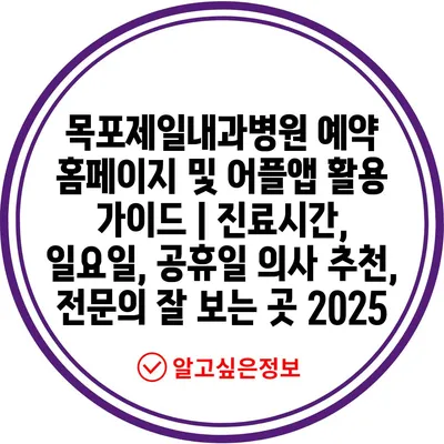 ✅ 목포제일내과병원 예약과 진료 정보를 손쉽게 확인해 보세요.