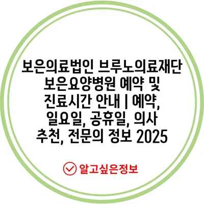 보은의료법인 브루노의료재단 보은요양병원 예약 및 진료시간 공지 | 예약, 일요일, 공휴일, 의사 추천, 전연락 정보 2025