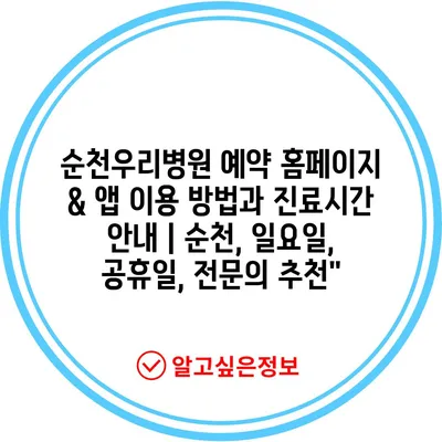 ✅ 순천우리병원의 진료시간과 예약 방법을 쉽게 알아보세요.