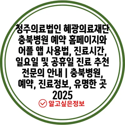 청주의료법인 혜광의료재단 충북병원 예약 홈페이지와 어플 앱 사용법, 진료시간, 일요일 및 공휴일 진료 추천 전연락 공지 | 충북병원, 예약, 진료정보, 유명한 곳 2025 에 대해 자주 묻는 질문 TOP 5