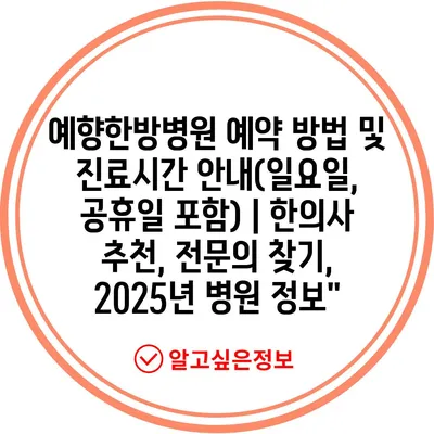 ✅ 예향한방병원의 예약 절차와 진료시간을 쉽게 알아보세요!