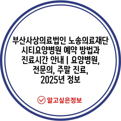 부산사상의료법인 노송의료재단 시티요양병원 예약 방법과 진료시간 공지 | 요양병원, 전연락, 주말 진료, 2025년 정보 에 대해 자주 묻는 질문 TOP 5
