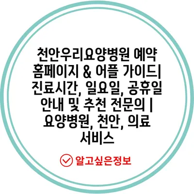 ✅ 천안우리요양병원의 진료시간과 예약 방법을 자세히 알아보세요.