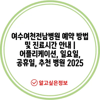 여수여천전남병원 예약 방법 및 진료시간 공지 | 어플리케이션, 일요일, 공휴일, 추천 병원 2025에 대해 알아보겠습니다.