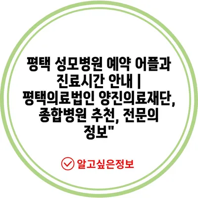 평택 성모병원 예약 어플과 진료시간 공지 | 평택의료법인 양진의료재단, 종합병원 추천, 전연락 정보에 대해 자주 묻는 질문 TOP 5