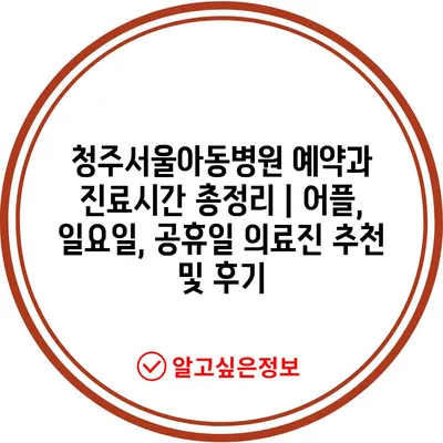 청주서울아동병원 예약 방법과 진료 시간을 지금 바로 알아보세요!