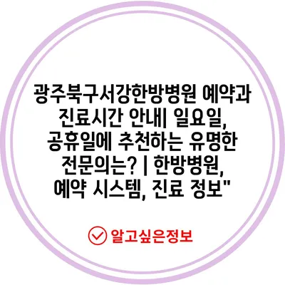 광주북구서강한방병원 예약과 진료시간 안내| 일요일, 공휴일에 추천하는 유명한 전문의는? | 한방병원, 예약 시스템, 진료 정보”