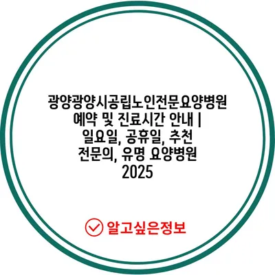 ✅ 광양시 공립노인전문요양병원의 예약 방법을 지금 바로 알아보세요.