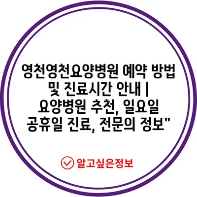 ✅ 영천영천요양병원의 예약방법과 진료시간을 자세히 알아보세요.