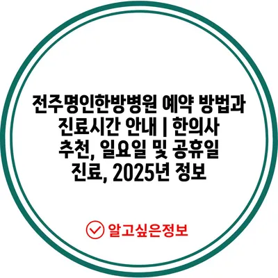 ✅ 전주명인한방병원의 진료시간과 예약 방법을 자세히 알아보세요.