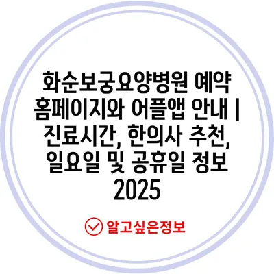 화순보궁요양병원 예약 홈페이지와 어플앱 공지 | 진료시간, 한의사 추천, 일요일 및 공휴일 정보 2025