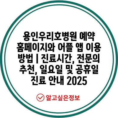 용인우리호병원 예약 홈페이지와 어플 앱 이용 방법 | 진료시간, 전연락 추천, 일요일 및 공휴일 진료 공지 2025에 대해 자주 묻는 질문 TOP 5