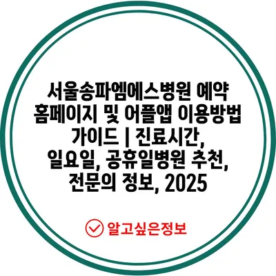 서울송파엠에스병원 예약 홈페이지 및 어플앱 이용방법 설명서 | 진료시간, 일요일, 공휴일병원 추천, 전연락 정보, 2025에 대해 알려제공합니다.