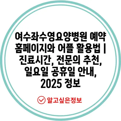 여수좌수영요양병원 예약 홈페이지와 어플 활용법 | 진료시간, 전연락 추천, 일요일 공휴일 공지, 2025 정보 에 대해 자주 묻는 질문 TOP 5