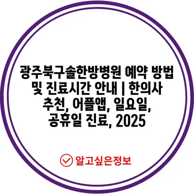 광주북구솔한방병원 예약 방법 및 진료시간 공지 | 한의사 추천, 어플앱, 일요일, 공휴일 진료, 2025 에 대해 자주 묻는 질문 TOP 5