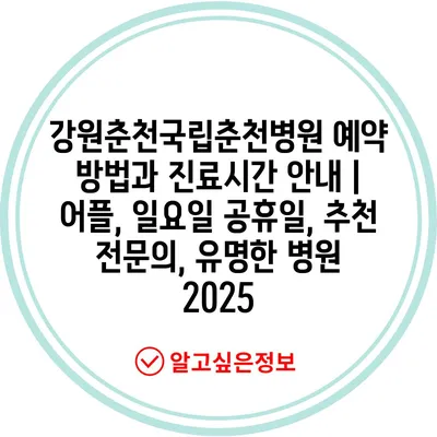 강원춘천국립춘천병원 예약 방법과 진료시간 공지 | 어플, 일요일 공휴일, 추천 전연락, 유명한 병원 2025 에 대해 자주 묻는 질문 TOP 5