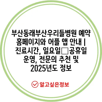 부산동래부산우리들병원 예약 홈페이지와 어플 앱 공지 | 진료시간, 일요일・공휴일 운영, 전연락 추천 및 2025년도 정보 에 대해 자주 묻는 질문 TOP 5