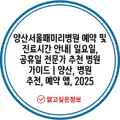 양산서울패미리병원 예약 및 진료시간 공지| 일요일, 공휴일 전문가 추천 병원 설명서 | 양산, 병원 추천, 예약 앱, 2025 에 대해 자주 묻는 질문 TOP 5