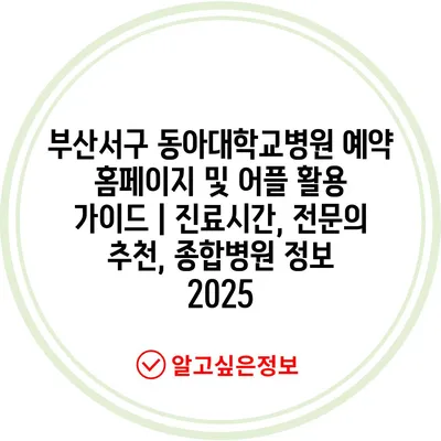 부산서구 동아대학교병원 예약 홈페이지 및 어플 활용 설명서 | 진료시간, 전연락 추천, 종합병원 정보 2025