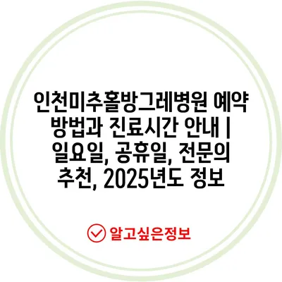 인천미추홀방그레병원 예약 방법과 진료시간 공지 | 일요일, 공휴일, 전연락 추천, 2025년도 정보 에 대해 자주 묻는 질문 TOP 5