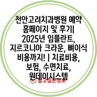 천안고려치과병원 예약 홈페이지 및 후기| 2025년 임플란트, 지르코니아 크라운, 뼈이식 비용까지! | 치료비용, 보험, 수면치료, 원데이시스템 에 대해 자주 묻는 질문 TOP 5