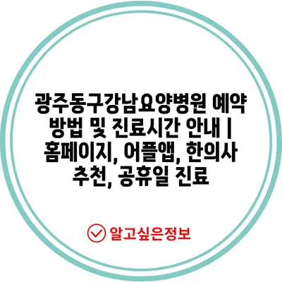 광주동구강남요양병원 예약 방법 및 진료시간 공지 | 홈페이지, 어플앱, 한의사 추천, 공휴일 진료 에 대해 자주 묻는 질문 TOP 5