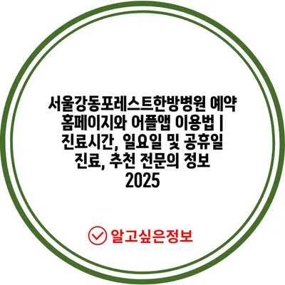 서울강동포레스트한방병원 예약 홈페이지와 어플앱 이용법 | 진료시간, 일요일 및 공휴일 진료, 추천 전연락 정보 2025 에 대해 자주 묻는 질문 TOP 5
