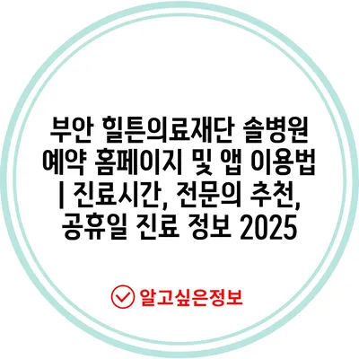 부안 힐튼의료재단 솔병원 예약 홈페이지 및 앱 이용법 | 진료시간, 전연락 추천, 공휴일 진료 정보 2025