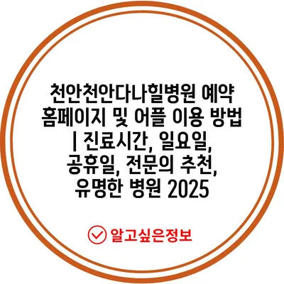 천안천안다나힐병원 예약 홈페이지 및 어플 이용 방법 | 진료시간, 일요일, 공휴일, 전연락 추천, 유명한 병원 2025에 대해 알아보겠습니다.