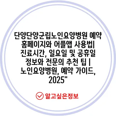 단양단양군립노인요양병원 예약 홈페이지와 어플앱 사용법| 진료시간, 일요일 및 공휴일 정보와 전연락 추천 팁 | 노인요양병원, 예약 설명서, 2025에 대해 소개합니다.