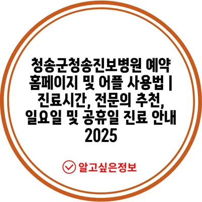 청송군청송진보병원 예약 홈페이지 및 어플 사용법 | 진료시간, 전연락 추천, 일요일 및 공휴일 진료 공지 2025에 대해 알아보겠습니다.
