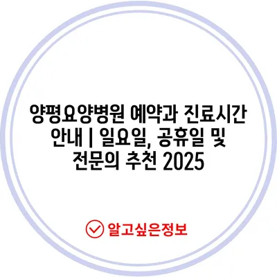 ✅ 양평요양병원의 진료시간과 예약 방법을 자세히 알아보세요.