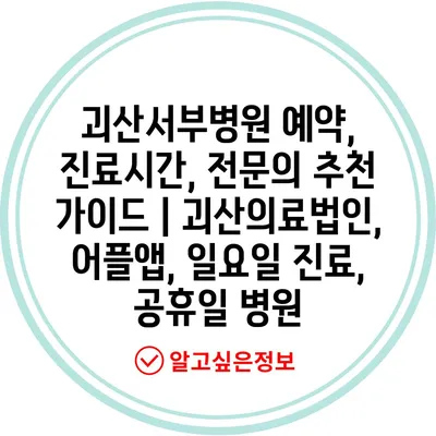✅ 괴산서부병원의 진료시간과 예약 방법을 자세히 알아보세요.