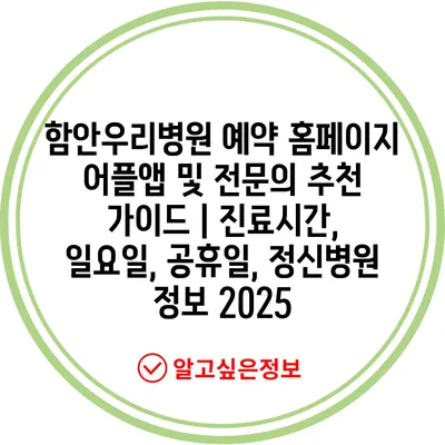 함안우리병원 예약 홈페이지 어플앱 및 전연락 추천 설명서 | 진료시간, 일요일, 공휴일, 정신병원 정보 2025에 대해 자주 묻는 질문 TOP 5