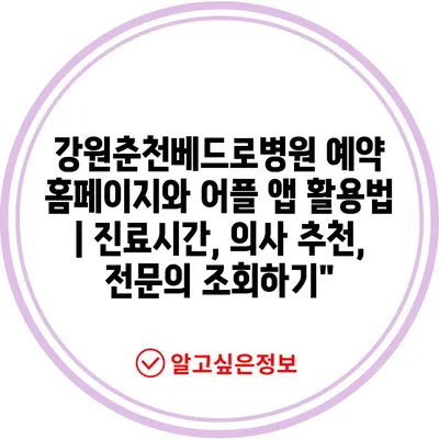 ✅ 강원춘천베드로병원의 예약 방법을 지금 알아보세요!