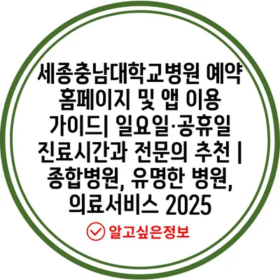 세종충남대학교병원 예약 홈페이지 및 앱 이용 설명서| 일요일·공휴일 진료시간과 전연락 추천 | 종합병원, 유명한 병원, 의료서비스 2025에 대해 알아보겠습니다.