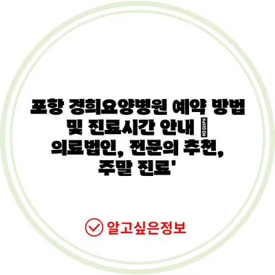 ✅ 포항 경희요양병원의 예약 과정과 진료시간을 쉽게 알아보세요.