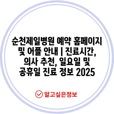 순천제일병원 예약 홈페이지 및 어플 공지 | 진료시간, 의사 추천, 일요일 및 공휴일 진료 정보 2025